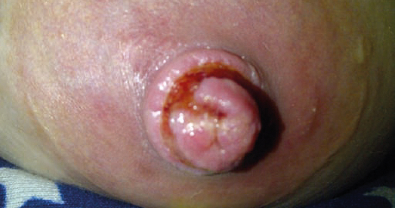 Le diagnostic est clinique : à l’interrogatoire, les tétées sont décrites comme très douloureuses, l’inspection du mamelon met en évidence des érosions superficielles (fig. 3) pouvant parfois entraîner un saignement lors des tétées.