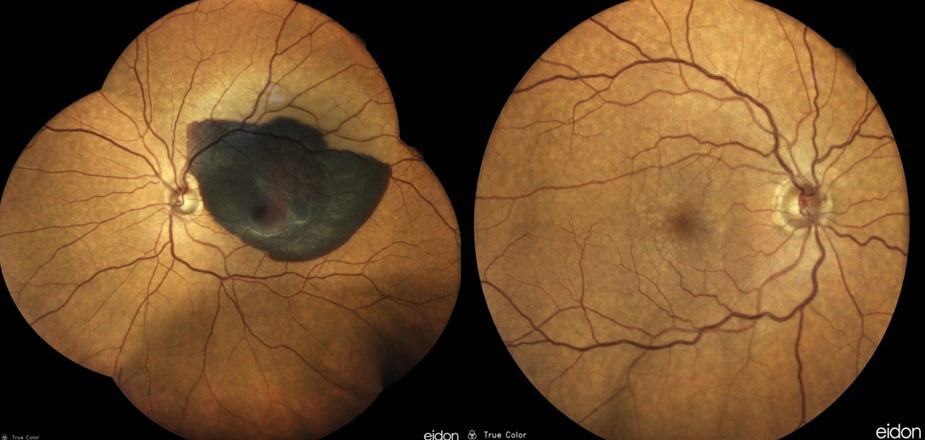 Œil blanc avec fond d’œil anormal