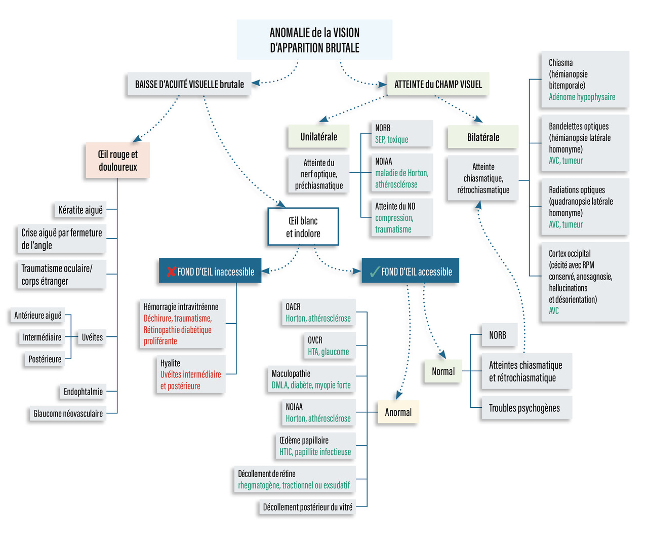Les anomalies de la vision d’apparition brutale constituent une cause fréquente de consultation aux urgences ophtalmologiques, avec plus de 20 % des motifs d’entrée. La prise en charge doit être rapide, adaptée et efficace afin d’éviter des conséquences potentiellement graves. Les causes sont nombreuses et nécessitent une approche diagnostique et thérapeutique spécifique, soulignant l’importance d’une classification précise et d’une démarche systématique.