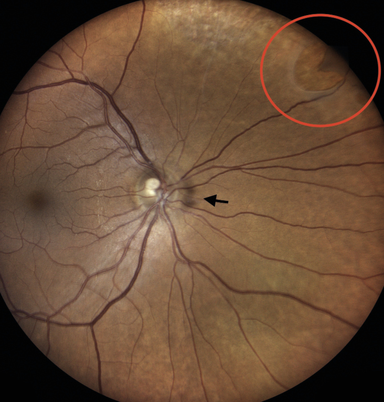 Physiologique avec l’âge, il se manifeste par des myodésopsies. Il correspond à un phénomène physiologique de contraction du vitré avec l’âge. Il impose la réalisation d’un fond d’œil dilaté (fig. 8). Lorsqu’il existe des lésions prédisposantes en périphérie rétinienne, le décollement du vitré peut entraîner un décollement de rétine secondaire et une hémorragie intravitréenne dont il faut suivre la bonne résorption en conseillant au patient une hydratation soutenue.