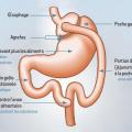 La SG est une procédure restrictive qui consiste à retirer une grande partie de l’estomac dans sa portion longitudinale afin de réduire sa capacité d’environ deux tiers (fig. 2). Cette intervention est irréversible et est le plus souvent réalisée par laparoscopie (cœlioscopie). L’intervention est de courte durée (environ une heure) et nécessite vingt-quatre à quarante-huit heures d’hospitalisation. Le mécanisme principal à l’origine de la perte de poids est fondé sur une satiété plus précoce. Les patients doivent être informés que la prise alimentaire doit être adaptée en conséquence : fractionnée et de durée allongée.