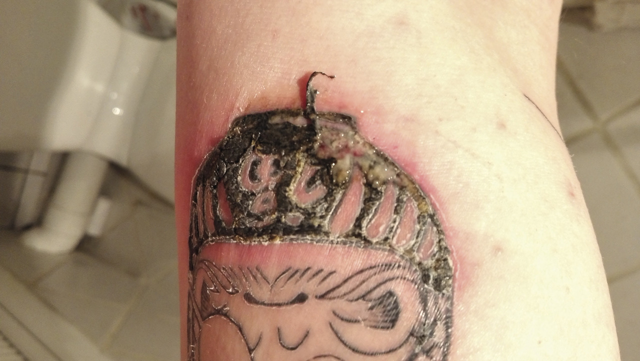 Hormis les regrets et les tatouages esthétiquement « ratés » ou ne correspondant pas aux attentes du client, le tatouage n’est pas une procédure dénuée de risque. Si certains désagréments au décours de l’acte sont passagers, l’apparition d’une lésion chronique justifie une biopsie.