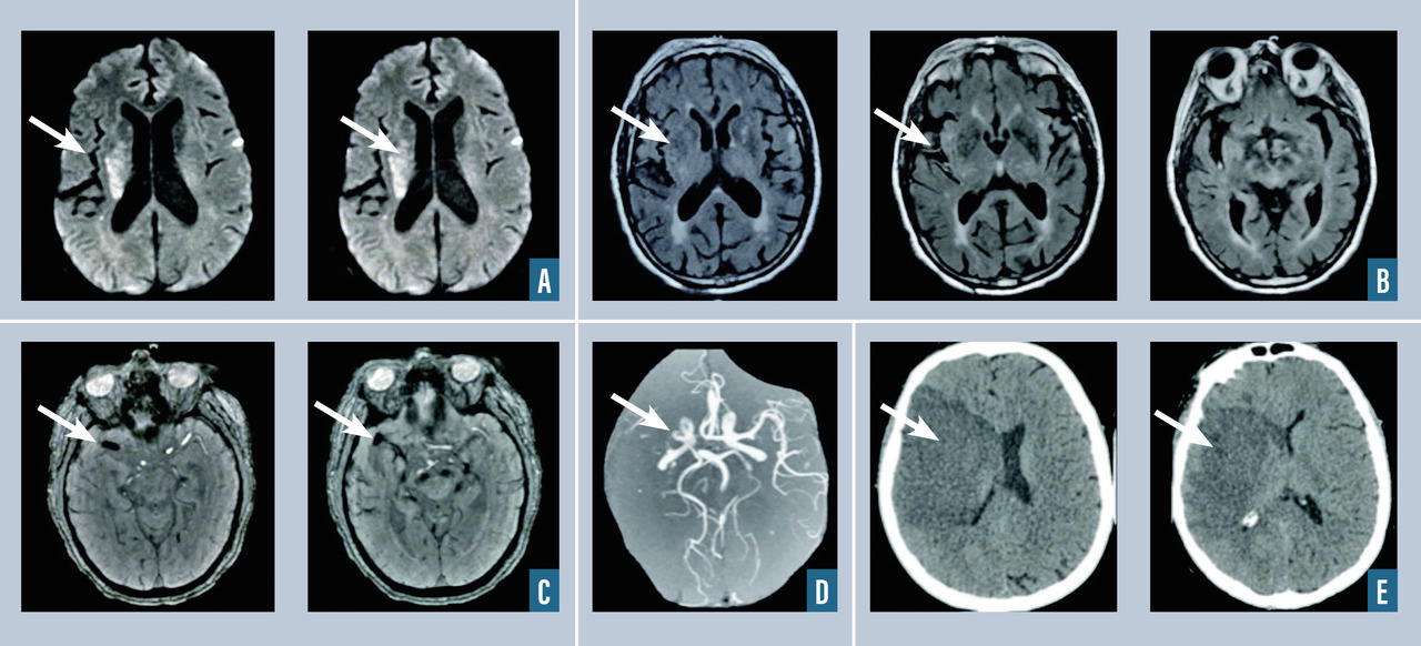 L’imagerie cérébrale ou médullaire occupe souvent le premier rang en cas de suspicion d’atteinte centrale, soit par scanner, soit de plus en plus par imagerie par résonance magnétique (IRM). L’IRM cérébrale (séquences de diffusion, ADC, FLAIR, T2* ou SWI, ARM-TOF [séquence TOF (time of flight) d’angiographie par résonance magnétique] ± IRM de perfusion) avec ARM-TOF (avec parfois des séquences veineuses en cas de suspicion de thrombose veineuse cérébrale) devient l’examen de référence (HAS 2009) de première intention pour explorer un déficit neurologique récent évoquant un accident vasculaire cérébral.
