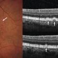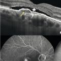 Dans la DMLA exsudative, les néovaisseaux sont visibles comme des lésions fusiformes hyper- réflectives, ainsi que leur activité : décollement séreux rétinien et logettes d’œdème intrarétiniennes (fig. 5 ).