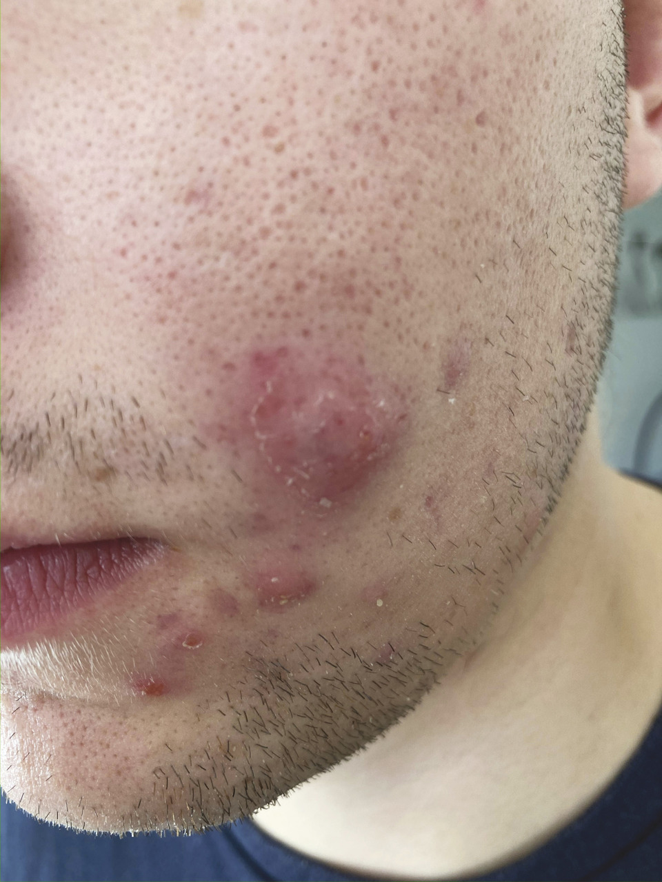 Elle se localiserait plus souvent au niveau du menton et en péribuccal qu’au niveau des joues.6,7 La présence de comédons associés aux papules et aux pustules permet de différencier l’acné d’une poussée de rosacée.7