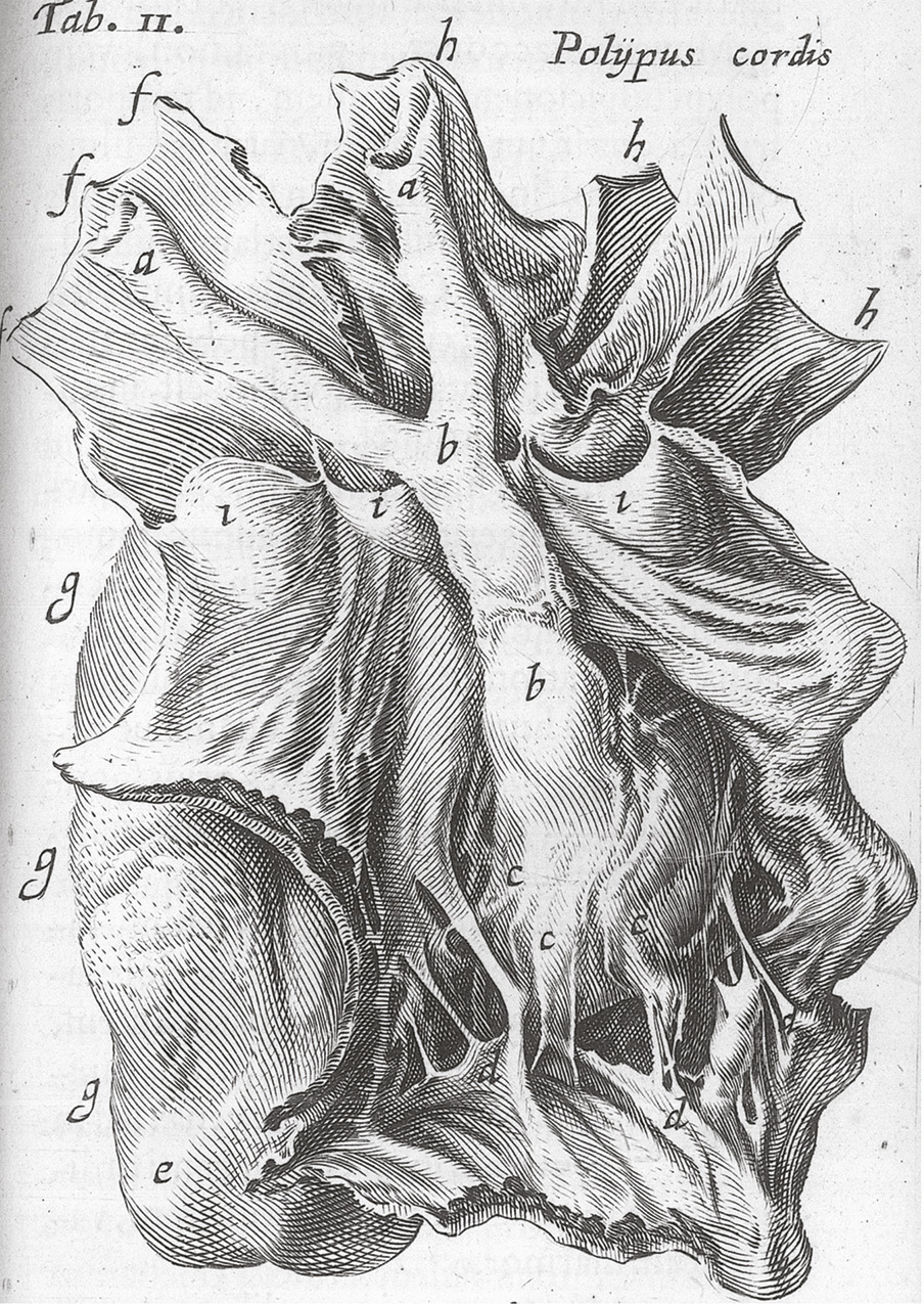 Marcello Malpighi (1628-1694), dans son livre Du polype du cœur (1666), fit une analyse approfondie de cette entité encore bien mal comprise.5