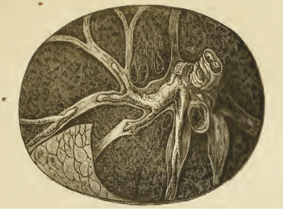 Dans son Mémoire sur l’embolie,17 Virchow présente ses travaux : « Après une année entière d’observations attentives recueillies aux autopsies de l’hôpital de la Charité de Berlin (...), je puis affirmer que l’oblitération de l’artère pulmonaire doit être rangée tout au moins parmi les états morbides les plus fréquents. »