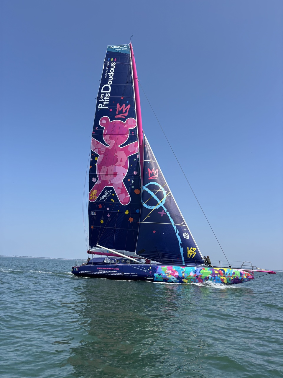 Les P’tits Doudous, c’est aussi le projet IMOCA : l’IMOCA est un voilier de 18,28 m de long né du réemploi de fibres de carbone déclassées issues de l’aéronautique, paré aux couleurs de l’association. Son skipper, Armel Tripon, également parrain de l’association, est fier d’avoir participé à ce travail titanesque de deux ans, qui a su réunir marins, techniciens, soignants et mécènes autour d’un projet commun, une vraie aventure humaine, donnant davantage de visibilité à l’association pour permettre d’accompagner encore plus d’enfants dans les hôpitaux. Prochaine étape pour IMOCA Les P’tits Doudous : la Transat Café L’Or au départ du Havre, en octobre 2025, avec à son bord Armel Tripon et Tanguy Leglatin.