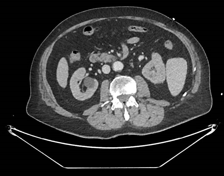 À l’examen clinique, il a des marbrures diffuses, une pâleur, des extrémités froides, un ictère cutanéo-muqueux diffus, une auscultation pulmonaire parfaitement claire, un abdomen souple et indolore. Le reste de l’examen est sans particularité. Le patient signale des urines anormalement foncées.