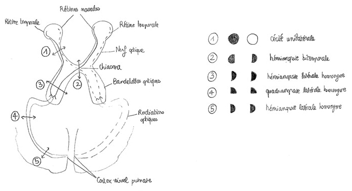 Le type d’hémianopsie est très important car il permet de localiser une atteinte neurologique, en connaissant le trajet des voies optiques.