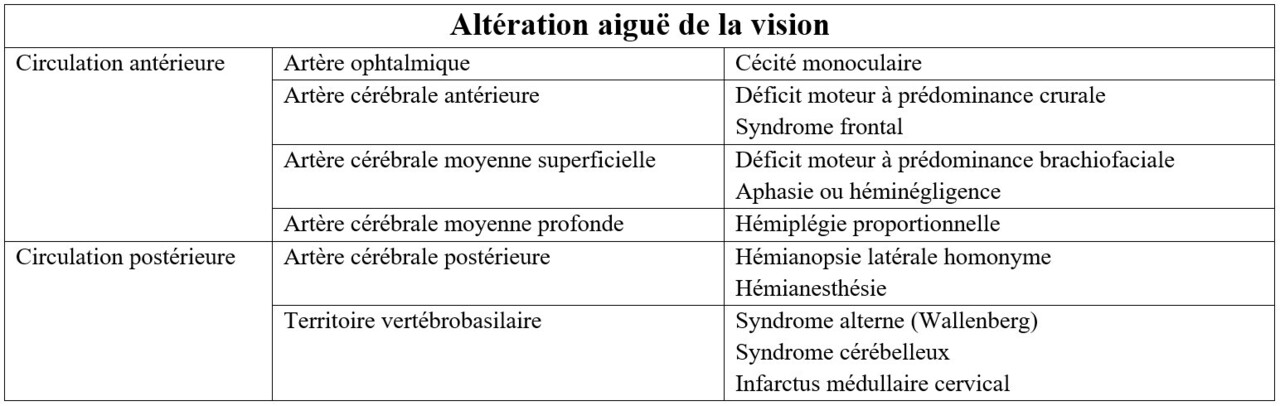 Tableau d’après le Collège des enseignants de neurologie. Altération aiguë de la vision.