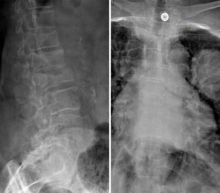 Vous faites réaliser une radiographie du rachis dorso-lombaire dont voici les clichés. Figure 1 (Salomé Abdellaoui, La Revue du Praticien)