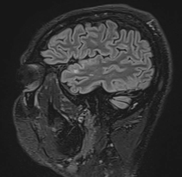 – sensibilité : hypopallesthésie distale des membres inférieurs, ataxie proprioceptive aux quatre membres mais prédominant à l’hémicorps gauche, nettement aggravée à la fermeture des yeux. Pas d’hypoesthésie à la piqûre ;