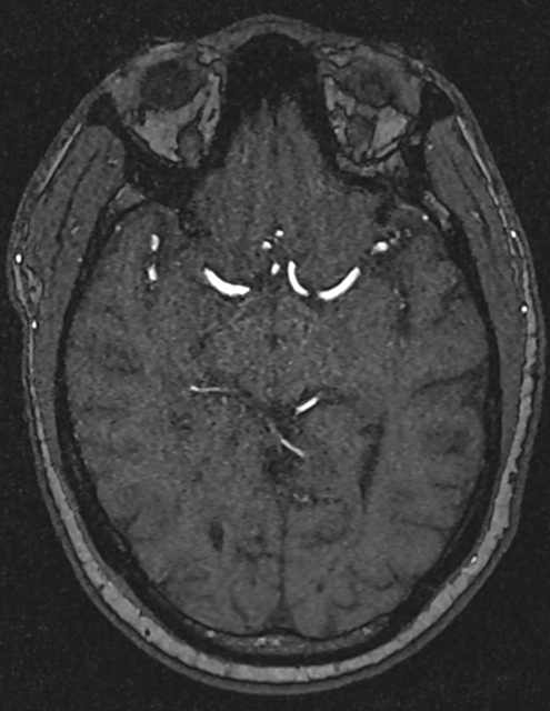– diplopie binoculaire sans paralysie oculomotrice. Pas d’autre anomalie à l’examen des paires crâniennes.