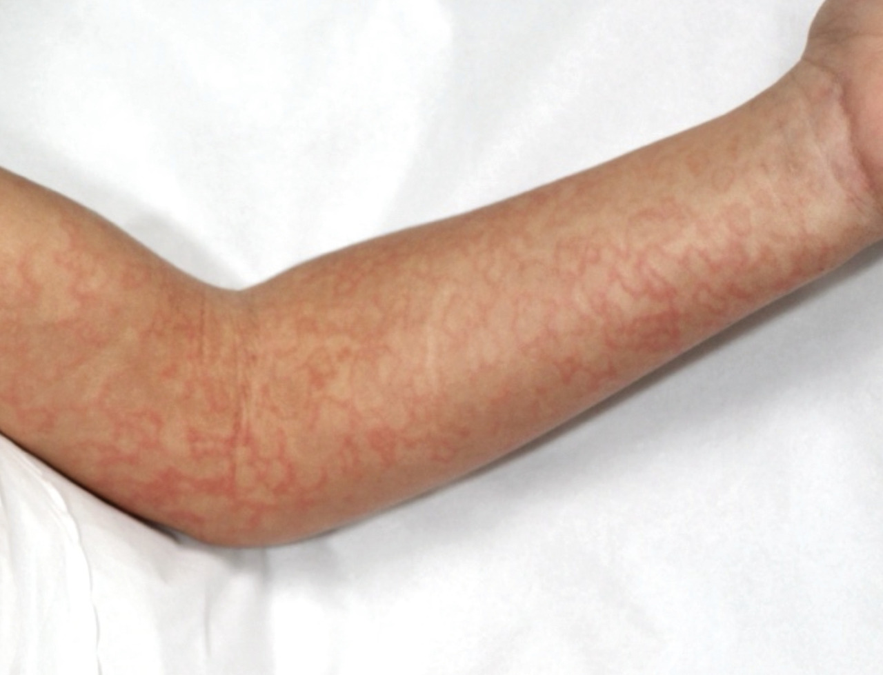La maladie de Still (arthrite juvénile idiopathique systémique) est caractérisée par une atteinte systémique associant fièvre, éruption, adénopathies, hépatosplénomégalie ; les arthrites ou arthralgies viennent au second plan. La présentation classique est une fièvre durant plus de six jours, avec des pics vespéraux, ne répondant pas au paracétamol. L’éruption cutanée qui coïncide avec des pics fébriles, fugace, est constituée de maculo-papules rosées, qui peuvent prendre un aspect urticarien et être prurigineuses.