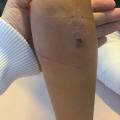 La dermohypodermite aiguë non compliquée se présente sous la forme d’un placard inflammatoire de début brutal, induré, parfois surélevé, donnant un aspect de bourrelet sur son pourtour (visage). L’éruption peut être parsemée, à sa périphérie, de vésiculo-bulles (