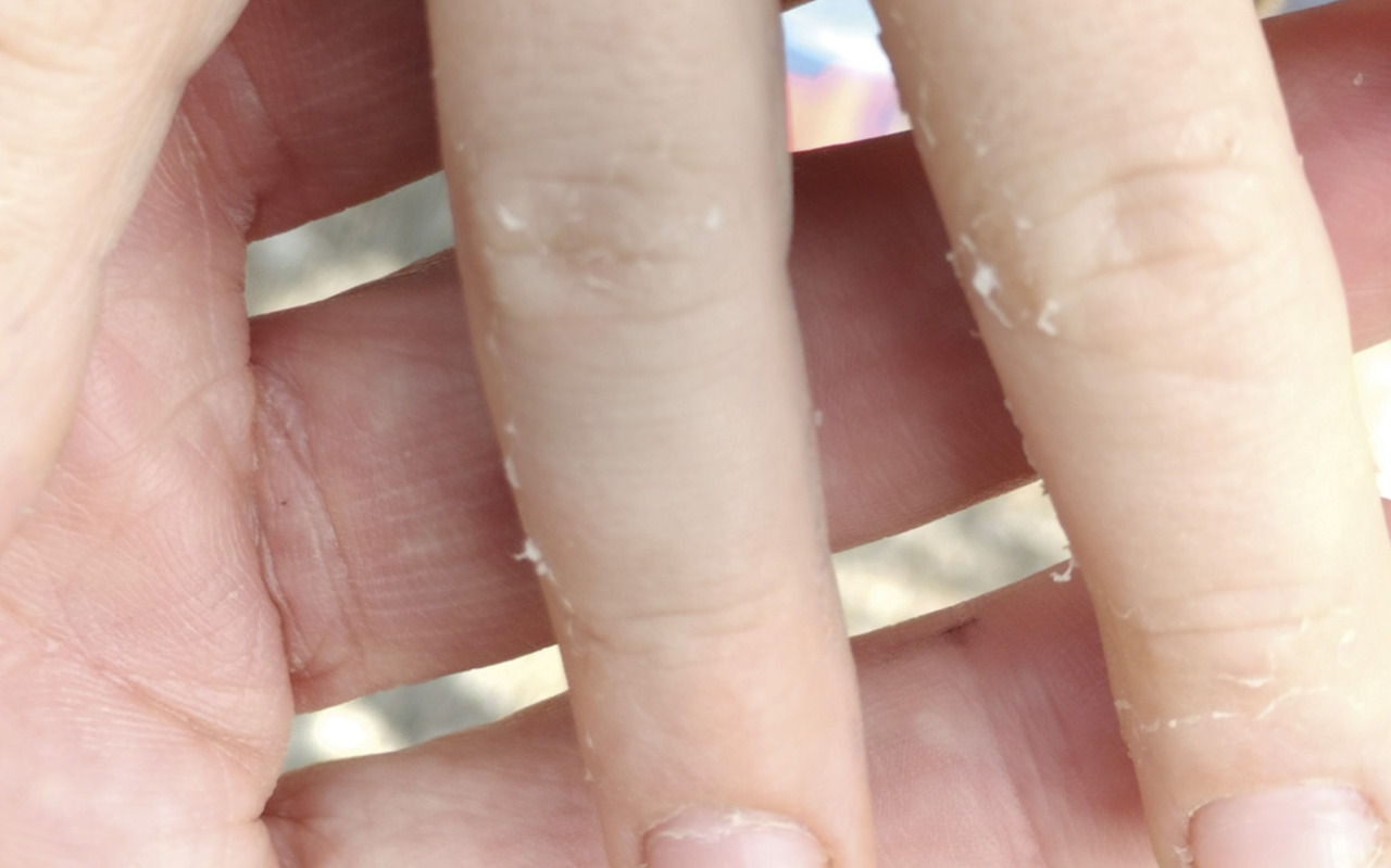 L’éruption est dite scarlatiniforme ; elle débute au niveau du tronc, avec un aspect granité qui peut être comparé au toucher à des grains de sable ou à du papier de verre. Elle prédomine au niveau des plis de flexion ; elle touche les membres jusqu’aux paumes et plantes (