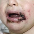 - varicelle floride, avec atteinte cutanéo-muqueuse diffuse et altération sévère de l’état général ;