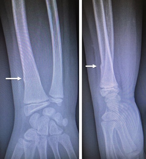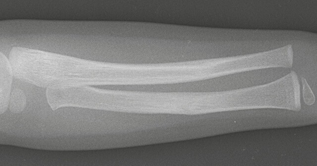 Si le diagnostic de fracture est suspecté cliniquement, la confirmation est radiographique. Il est presque toujours inutile de demander des radiographies comparatives bien que l’interprétation des radiographies de l’enfant demande une certaine expérience. Les radiographies comparatives sont discutables, car elles sont responsables d’une irradiation plus importante de l’enfant. En raison des difficultés de réalisation des incidences du côté fracturé à cause de la douleur, les deux séries de clichés ne seront pas identiques, et donc la comparaison entre les deux côtés sera très difficile.