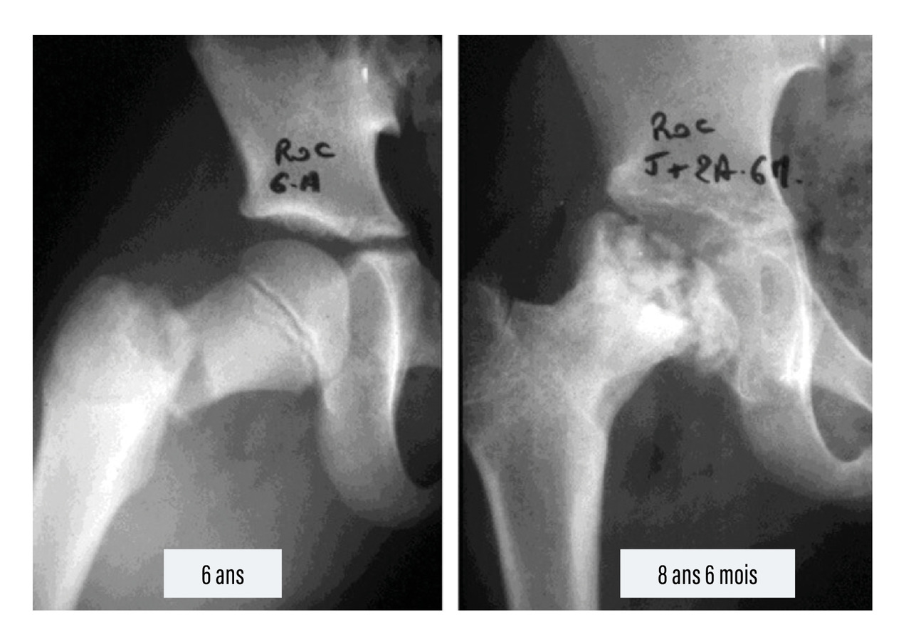 L’os du petit enfant a une structure moins résistante que celle de l’adulte. Une grande partie est constituée d’une maquette cartilagineuse (non visible sur une radiographie) qui s’ossifie progressivement au cours de la croissance. Au fur et à mesure que l’enfant grandit apparaissent au sein de cette maquette cartilagineuse des noyaux d’ossification (fig. 1). En fin de croissance, toute la maquette cartilagineuse a disparu et s’est ossifiée.
