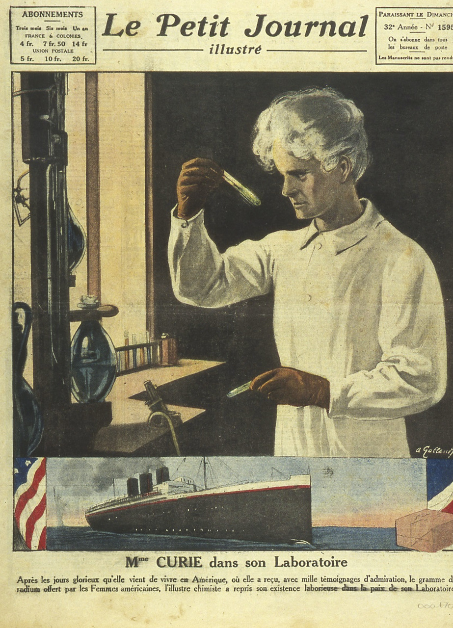 Le radium est resté, dans l’imaginaire populaire, le symbole de l’acharnement scientifique : qui n’a pas en tête l’image d’Épinal de Marie Curie, dans le hangar vétuste et glacial qui lui servait de laboratoire, véhiculant et malaxant des quintaux de pechblende (minerai d’uranium), pour leur arracher l’extraordinaire élément dont elle pressentait la présence, ce « fabuleux métal », pour paraphraser José-Maria de Heredia (fig. 1 ).