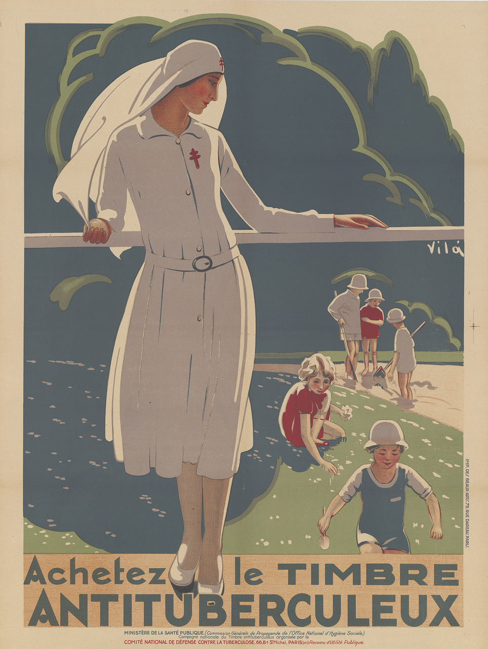 Au début du XXe siècle, l’effondrement démographique et la mortalité infantile sont des préoccupations majeures. La mise en œuvre d’une éducation à l’hygiène pour lutter contre les « fléaux sociaux », comme la tuberculose ou la syphilis, se développe. Elle est le fruit d’initiatives privées, à l’image de la Fondation Rockefeller. Les campagnes d’encouragement à la prévention, comme celle du timbre antituberculeux, se multiplient et réutilisent les codes de la publicité naissante (fig. 6 ). Après-guerre, les organismes publics s’emparent de cette éducation à la santé dans l’objectif de modifier les comportements individuels et utilisent tous les canaux de diffusion, dont la télévision à partir des années 1960.