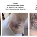 La classification de Hurley (1989) est un score statique qui cote la sévérité de la maladie en trois groupes (fig. 2). Dans une étude française portant sur 302 patients ayant une hidradénite suppurée, 68,2 % d’entre eux étaient classés en grade 1, 27,6 % en grade 2 et 3,9 % en grade 3.4