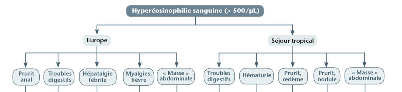 Hyperéosinophilie : explorations (*technique spécifique aux anguillules).