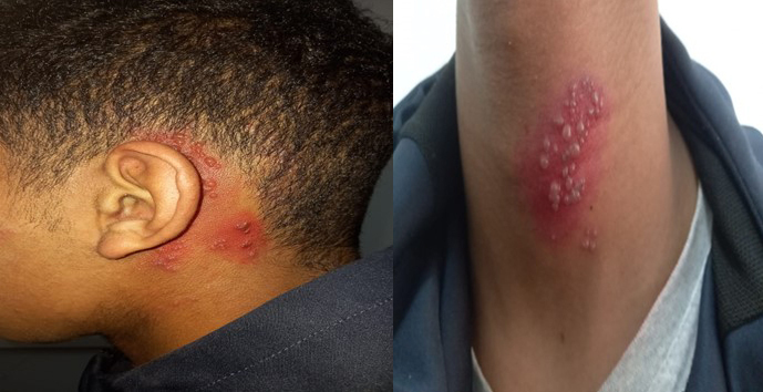 Un jeune homme de 20 ans, sans antécédents médico-chirurgicaux particuliers, consulte pour des lésions douloureuses évoluant depuis une semaine, siégeant au niveau du cou et rétro-auriculaires.