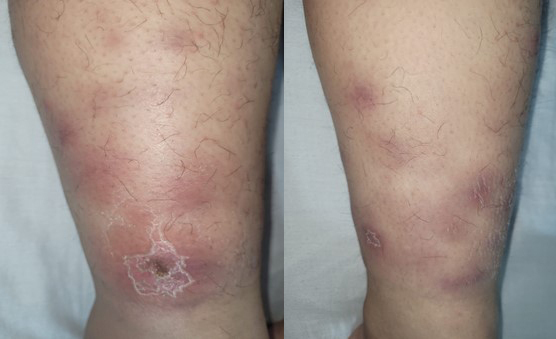 Une femme âgée de 20 ans, sans antécédents particuliers, consulte pour des lésions siégeant au niveau des deux jambes, apparues il y a un mois.
