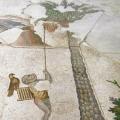 Figure 3. Un singe, avec une perche, essaye de faire tomber des dattes d’un palmier (mosaïque romaine) .