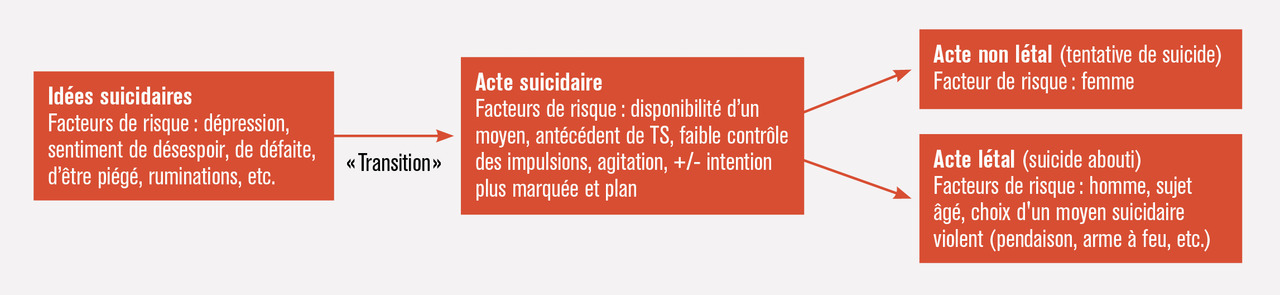 Le principe de la transition suicidaire et de ses facteurs de risque est présenté dans la figure 2 .