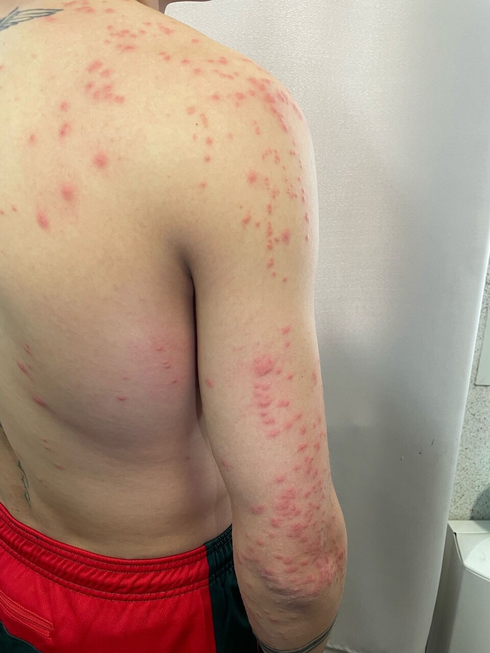 Un tableau d’éruption prurigineuse des zones exposées sans autre symptôme doit conduire à un interrogatoire poussé. Il convient de rechercher un contexte de voyage récent (pays étrangers, hygiène, mobilier en bois) et une concordance entre le changement de lieu de sommeil et le début des symptômes. Il existe une concordance entre la localisation des lésions et la position de sommeil.
