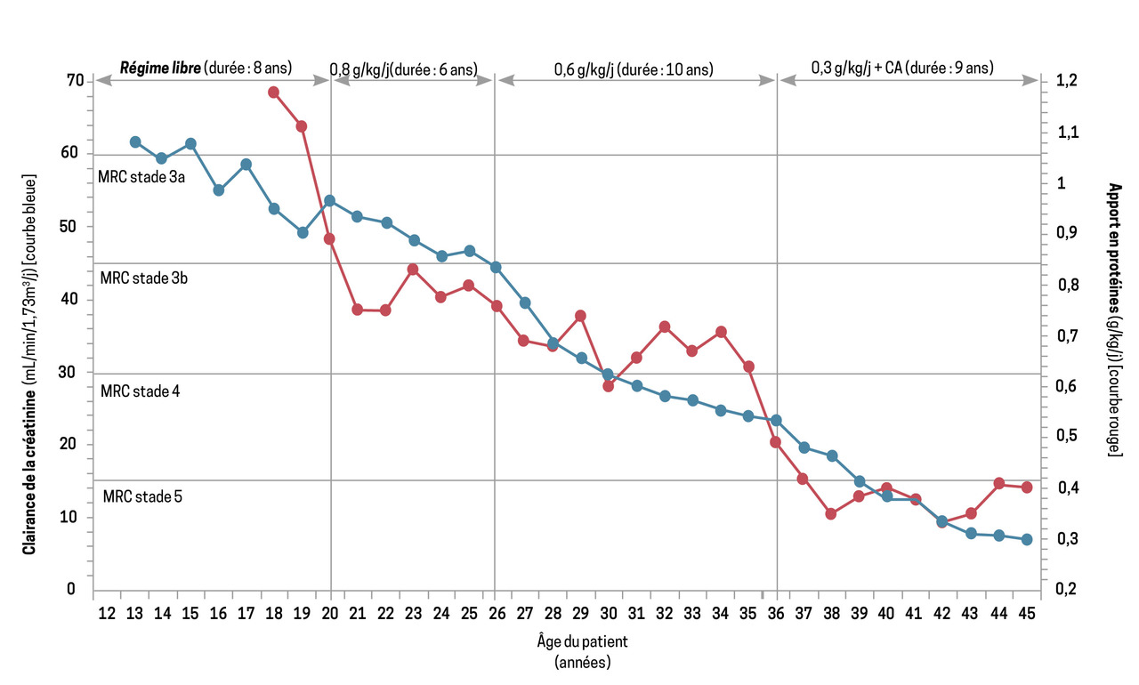 En général, deux patients sur trois poursuivent un RPP à 0,6 g de protéines/kg/j. Les effets bénéfiques observés convainquent un patient sur trois de poursuivre un RTPP à 0,3 - 0,4 g de protéines/kg/j.4