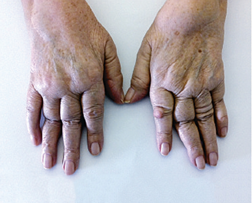 Les nodules rhumatoïdes sont des nodosités sous-cutanées siégeant le plus souvent au niveau des avant-bras, des coudes et des doigts. Ils s’observent chez 10 à 20 % des malades au cours du suivi (fig. 3).