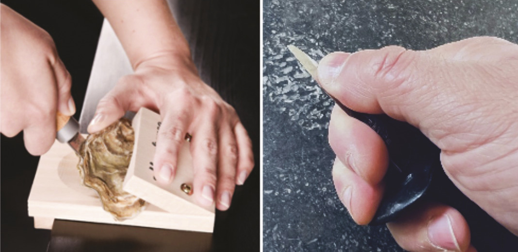 - pratiquer la bonne technique d’ouverture des huîtres (utiliser un sabot et ne pas laisser la pointe dépasser trop) [