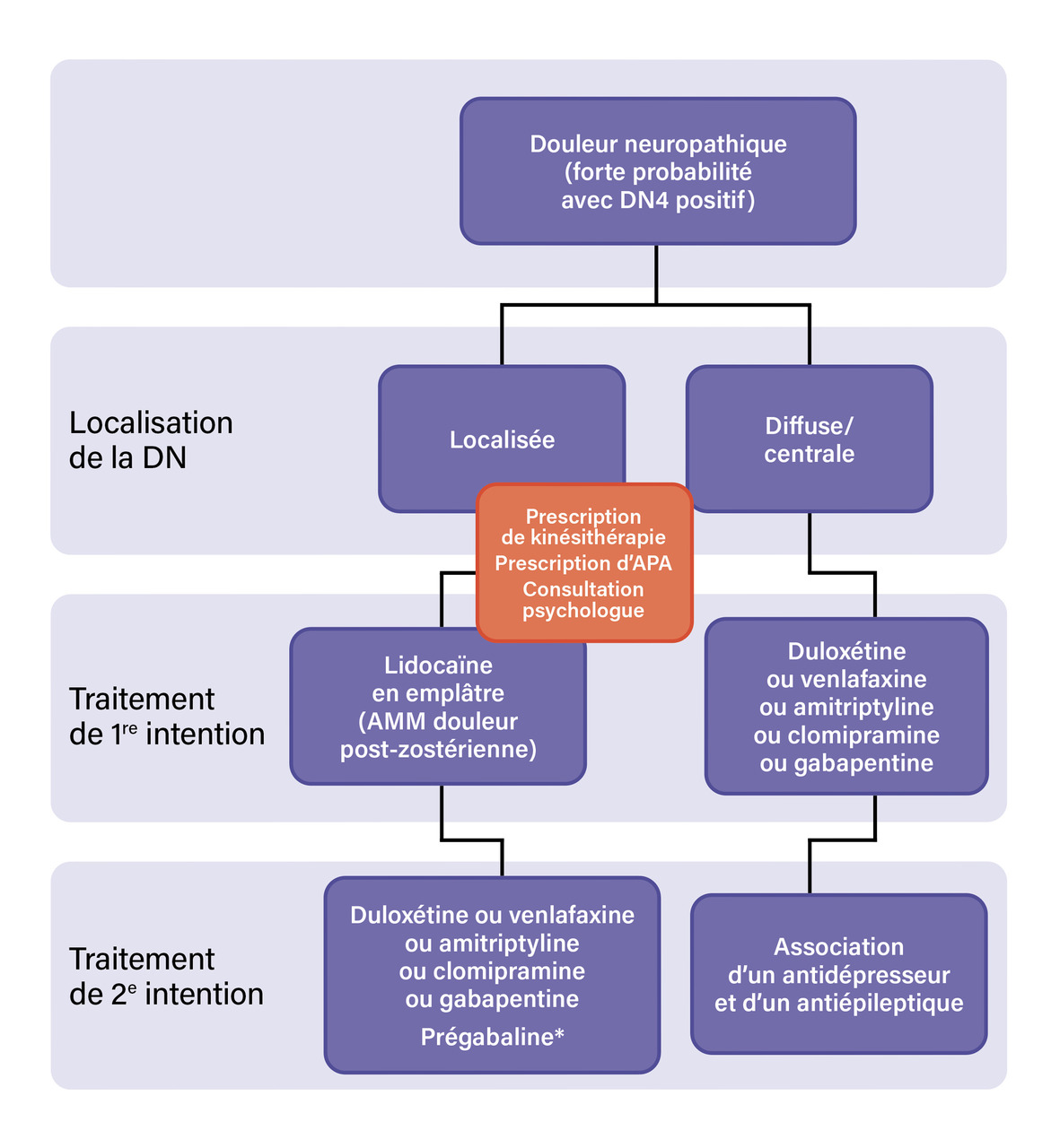 11. Moisset X, Bouhassira D, Couturier JA, et al. Traitements pharmacologiques et non pharmacologiques de la douleur neuropathique : une synthèse des recommandations françaises. Douleur et Analgésie 2020;33(2):101‑12.