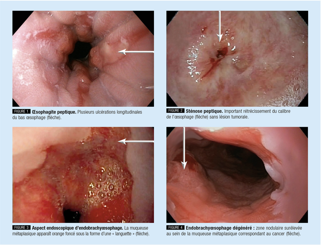 Le reflux gastro-œsophagien, par l’endobrachyœsophage, est le facteur de risque principal de l’adénocarcinome œsophagien. Un adénocarcinome œsophagien doit être suspecté devant une dysphagie, une altération de l’état général, surtout chez un patient connu pour un reflux gastro-œsophagien ancien. En endoscopie, on trouvera une lésion ulcérée et/ou bourgeonnante, volontiers sténosante, saignant au contact.
