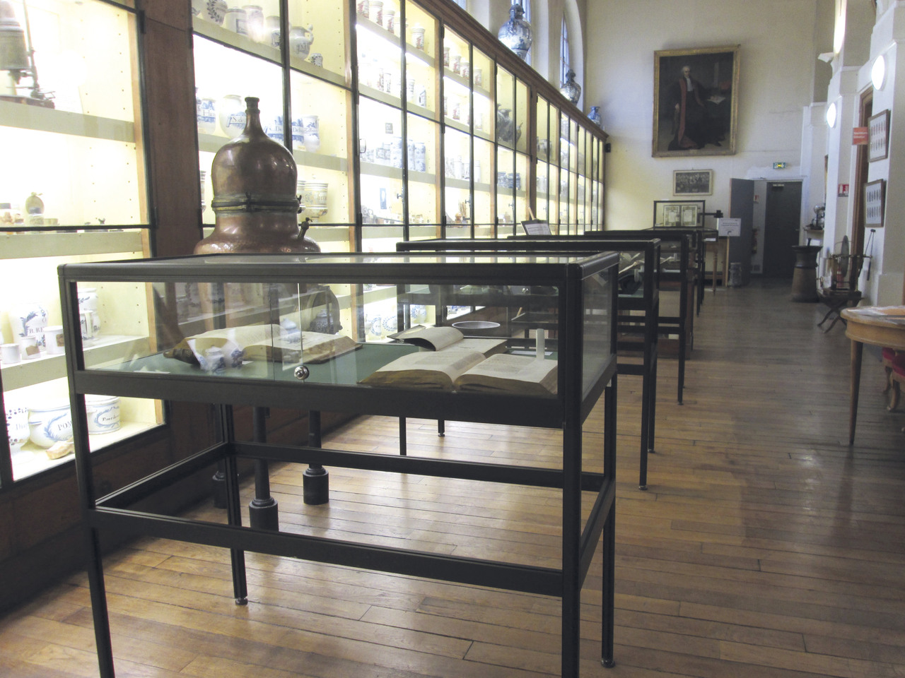 Son appel fut reçu de manière favorable. Il en résulta une « Souscription en faveur du Musée historique de l’École supérieure de pharmacie de Paris », parrainée conjointement par le doyen Henri Gautier et Charles Buchet. Quelques milliers de francs furent collectés, mais cette somme se révéla malheureusement insuffisante pour négocier le rachat de la collection Reber. Cet argent permit néanmoins d’enrichir les fonds patrimoniaux de l’École (future faculté de pharmacie de l’université Paris-Descartes). On peut en admirer quelques belles survivances dans la galerie Guillaume-Valette (ex-galerie Henri-Fialon)[fig. 4] , qui sert aujourd’hui d’antichambre au cabinet du doyen.