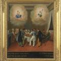 Extraire un calcul vésical par incision de la vessie (opération de la taille) était extrêmement risqué. Le patient semble ici avoir survécu, d’où cet ex-voto qui précède seulement de quelques années l’invention de la lithotritie …