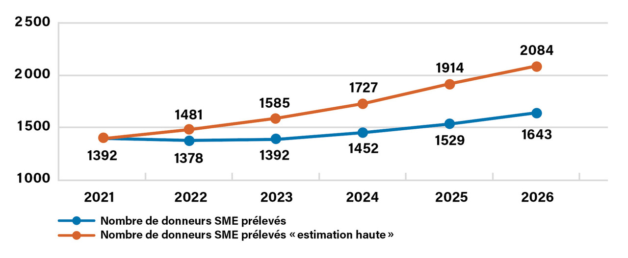 3. Rapport médical et scientifique 2021 de l’Agence de la biomédecine. https://rapport-annuel.agence-biomedecine.fr/4. Plan ministériel pour le prélèvement et la greffe d’organes et de tissus 2022-2026. Greffes et dons d’organes : plans d’actions 2022-2026. Ministère des Solidarités et de la Santé. https://vu.fr/dysO