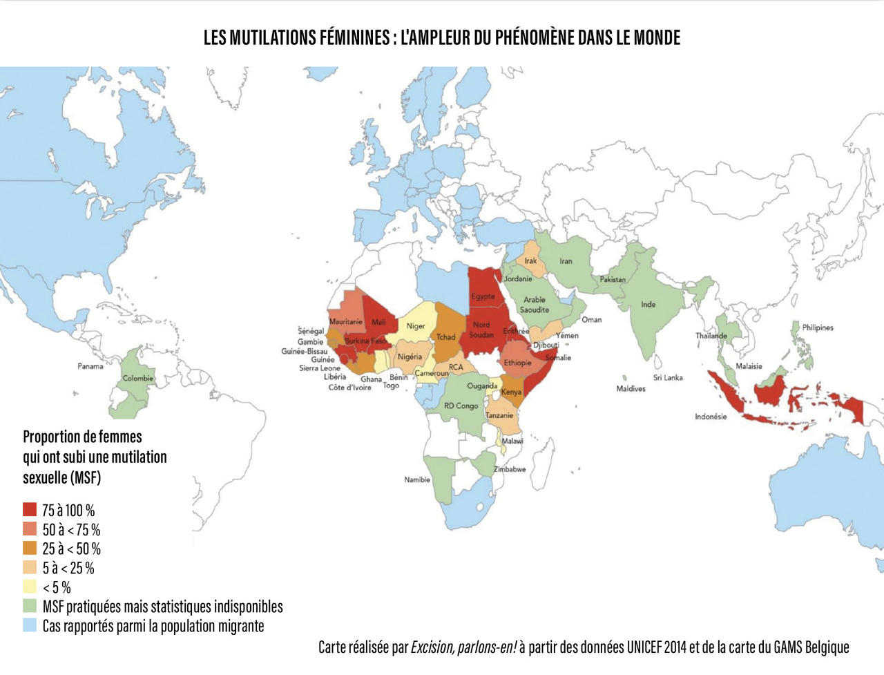 Il est important de connaître les pays à fort risque d’excision et d’avoir une vigilance particulière pour les petites filles (voire les adolescentes) qui vont dans le pays d’origine des parents (figure) : demander si l’excision se pratique dans la famille des parents, faire un rappel des sanctions légales encourues (quinze ans de prison si mineure de moins de 15 ans et 150 000 euros d’amende). C’est une indication à la levée du secret professionnel (information préoccupante).