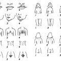 Dans la majorité des cas, il s’agit d’un SOPK. Le signe clinique le plus fréquent est l’hirsutisme, défini comme le développement excessif de la pilosité dans les régions où elle est normalement absente chez la femme : visage, thorax, ligne blanche. La sévérité de l’hirsutisme est classiquement évaluée par le score de Ferriman-Gallwey : à chacune des neuf régions les plus androgénosensibles est assignée une cotation de 0 à 4. Un score supérieur à 8 définit arbitrairement l’hirsutisme. Cependant, ce score a une faible valeur prédictive car il varie selon l’opérateur, et beaucoup de patientes utilisent des mesures dépilatoires avant de consulter. Il peut être utile de demander à la patiente de faire une autoévaluation de ce score en montrant le schéma (fig. 5).