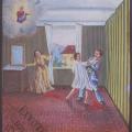 Mais remontant le cours du XIXe siècle, nous rencontrons un autre cas de violence pathologique, sur un tableau montrant une tentative avortée d’assassinat sur conjoint en août 1848 (toile de 33 x 24 cm) [