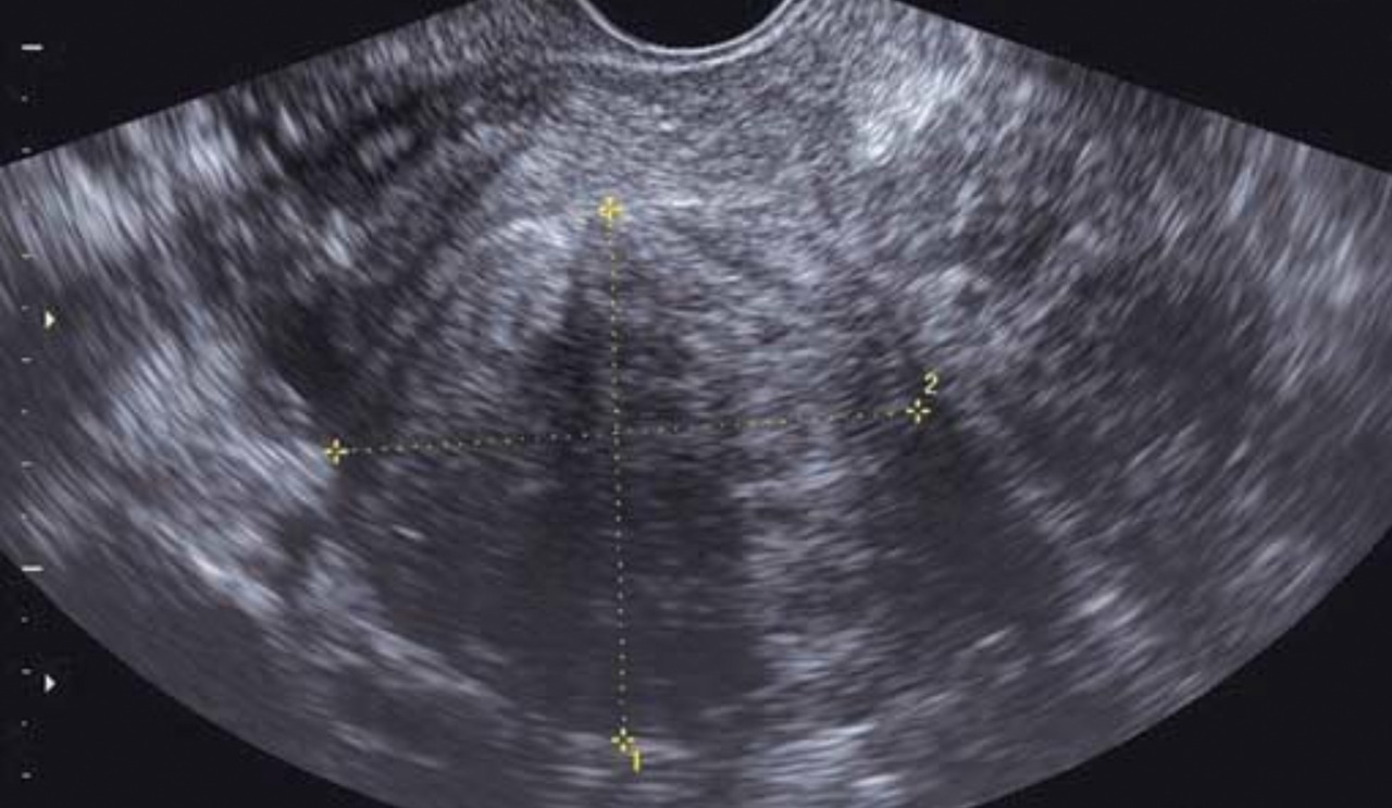 Elle est toujours indiquée en cas d’hémorragie génitale d’origine haute, réalisée par voie sus-pubienne dans un premier temps, puis par voie endovaginale, vessie vide, dans un deuxième temps.Elle mesure la taille de l’utérus, qui est augmentée en cas d’adénomyose ou de fibrome.