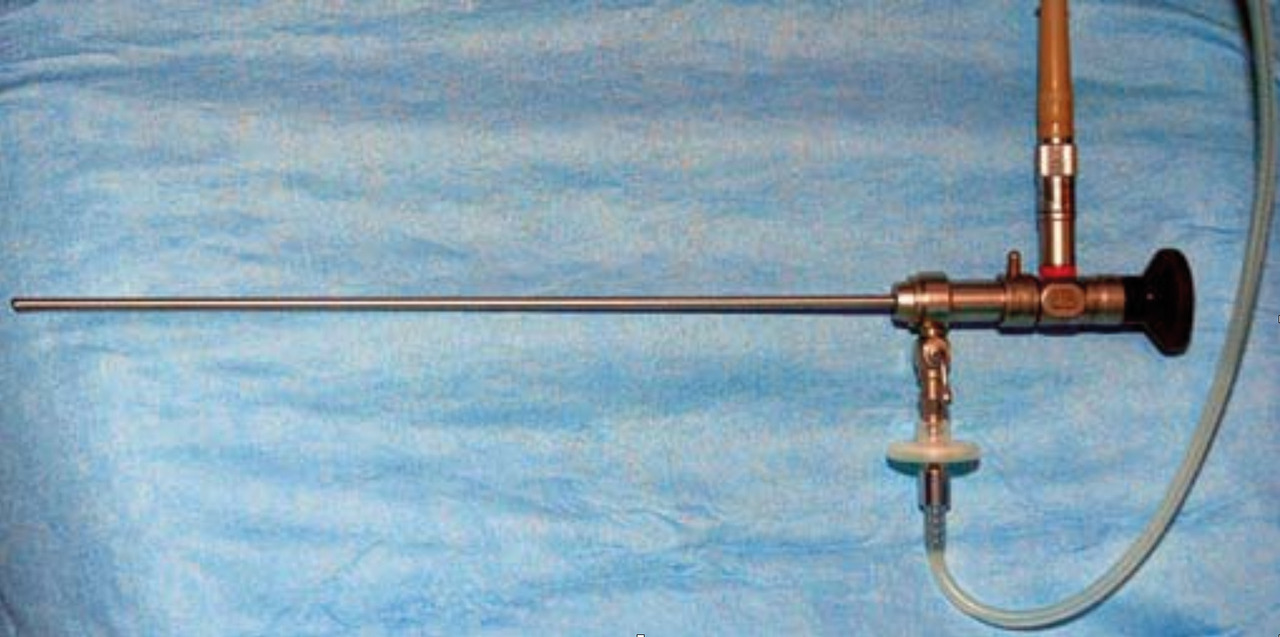 Elle consiste à introduire dans la cavité utérine un endoscope (fig. 3), qui peut être souple ou rigide. La distension de la cavité utérine se réalise au sérum physiologique ou à l’aide de CO2. Cet examen diagnostique peut se réaliser en consultation, sous anesthésie locale et, du fait du faible calibre des hystéroscopes, ne nécessite en général pas de dilatation du col utérin. Elle peut également être réalisée sous anesthésie générale, elle est alors associée au curetage biopsique ou hémostatique.
