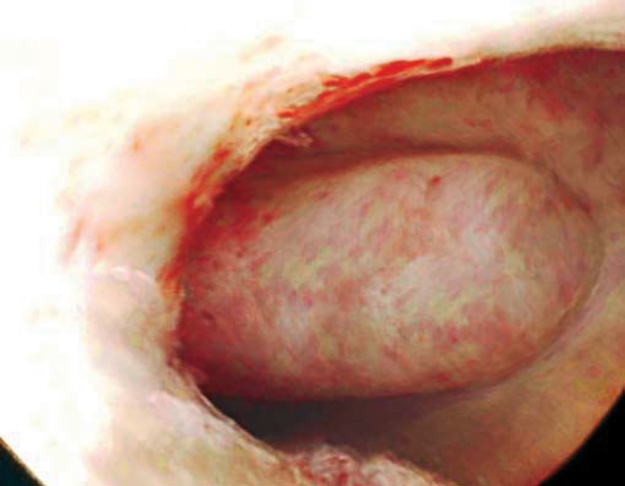 Ils peuvent être la cause de douleurs à type de colique expulsive. L’examen clinique retrouve un utérus normal au toucher vaginal. Leur diagnostic est le plus souvent évoqué sur une échographie pelvienne visualisant une image endocavitaire d’échogénicité comparable au myomètre. Le Doppler permet de retrouver le pédicule. L’hystérographie, si elle est réalisée, retrouve une image régulière intracavitaire. L’hystéroscopie permet le diagnostic de certitude et leur résection (fig. 6). Ils sont le plus souvent bénins (par hyperplasie glandulokystique ou fibro-adénomateux). Un examen anatomopathologique est néanmoins associé afin de ne pas méconnaître un cancer de l’endomètre.