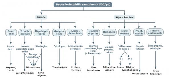 Hyperéosinophilie : explorations (*technique spécifique aux anguillules).