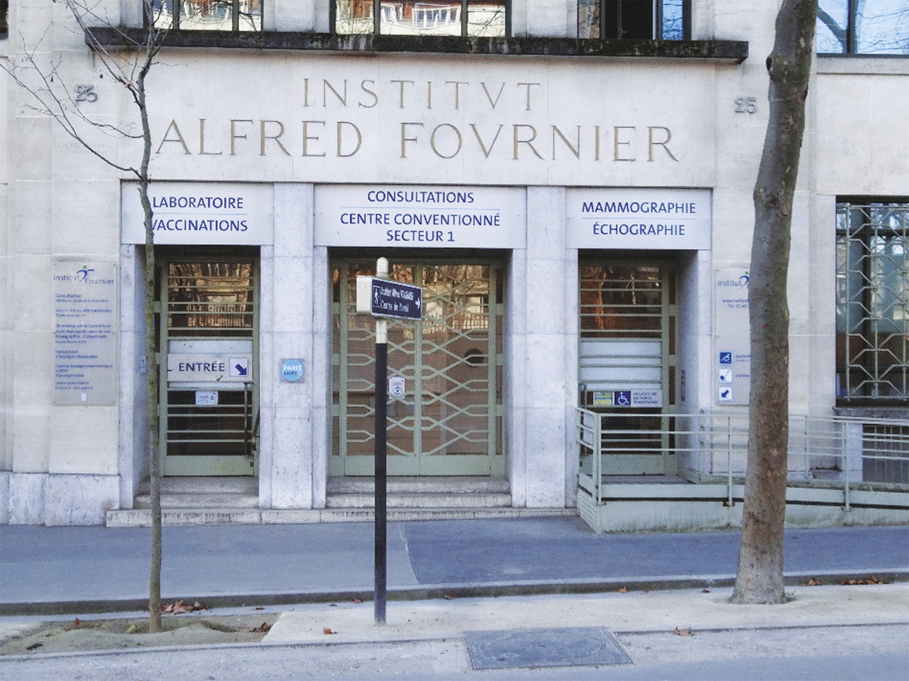 L’institut compte près de 130 collaborateurs, répartis sur deux sites parisiens : l’un situé boulevard Saint-Jacques, Paris 14e (fig. 5 ), et l’autre rue Pétion, Paris 11e. Ce dernier, créé à la demande de la Mairie de Paris, regroupe des cabinets médicaux et dentaires. Ces deux centres accueillent environ 140 000 consultants chaque année. Les maladies infectieuses, et en particulier les infections sexuellement transmissibles (IST), restent la spécificité de l’institut Alfred-Fournier depuis sa création. Elles sont prises en charge par les infectiologues, les andrologues (Dr Jean-Marc Bohbot, ancien directeur médical de l’institut) et l’équipe spécialisée du centre gratuit d’information, de dépistage et de diagnostic (CeGIDD) – le plus grand centre privé de Paris –, assurant dépistage, traitement, prévention des IST et tout particulièrement de l’infection par le virus de l’immunodéficience humaine (VIH), avec la prophylaxie préexposition, et les différents aspects de la santé sexuelle. Les prélèvements et les soins sont assurés par les infirmiers et les examens biologiques par un laboratoire de haute technicité très orienté sur le diagnostic des maladies infectieuses. Ce laboratoire est dirigé par le Dr Agathe Goubard, par ailleurs directrice médicale de l’institut Alfred-Fournier.